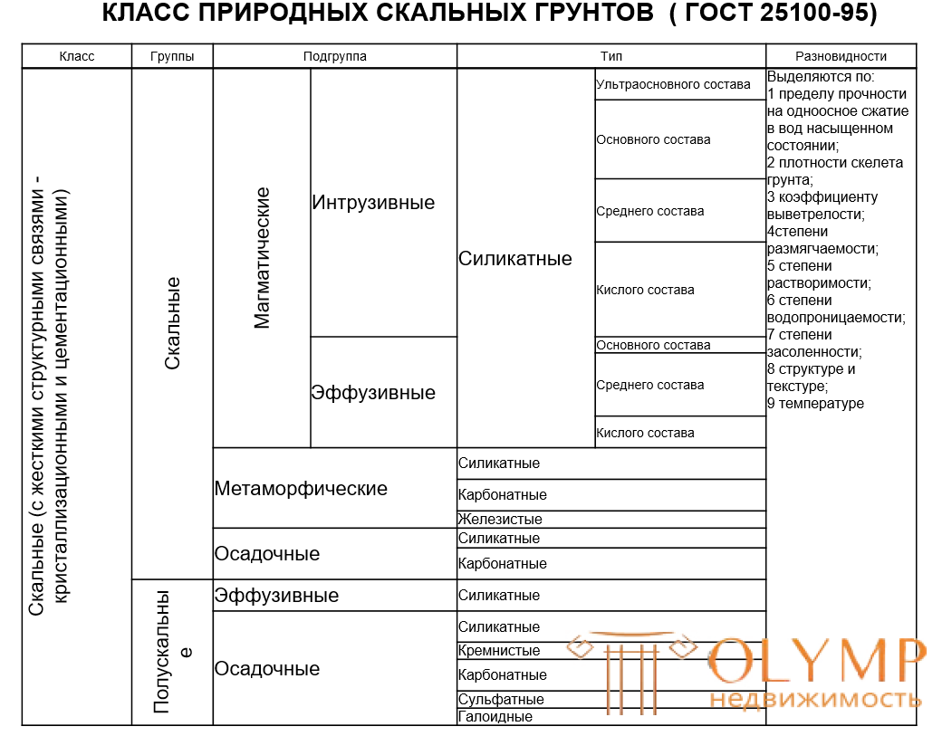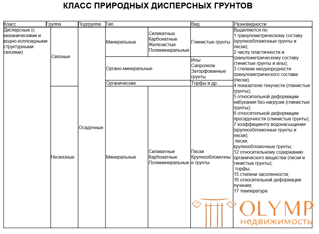 Таким образом, согласно ГОСТу 25100-2011 грунты подразделяются на 3 основных класса: